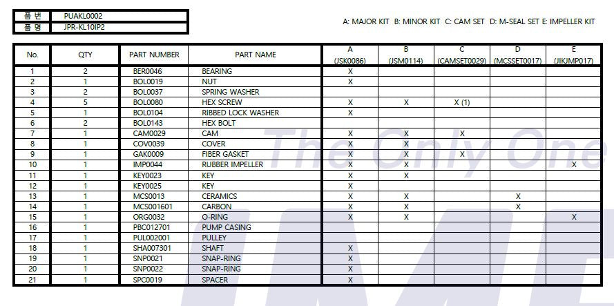| POS | JMP | Description | Qty | MINOR KIT | MAJOR KIT |