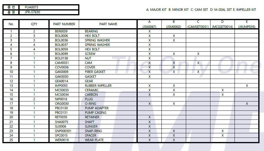 | JSK0067 | MAJOR KIT | 1 | ALL INTERNAL PARTS |