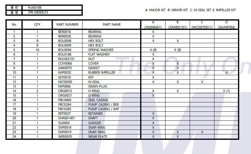 | Impeller : | 9100-01 (Mitsubish 42783-00127). |