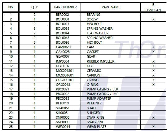 Service Kit (Minor) Seawater Pump for JMP JPR-C1025- JSM0047