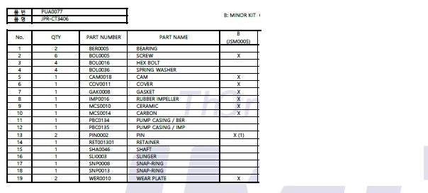 Service Kit (Minor) Seawater Pump JMP JPR-G6300, CT3406