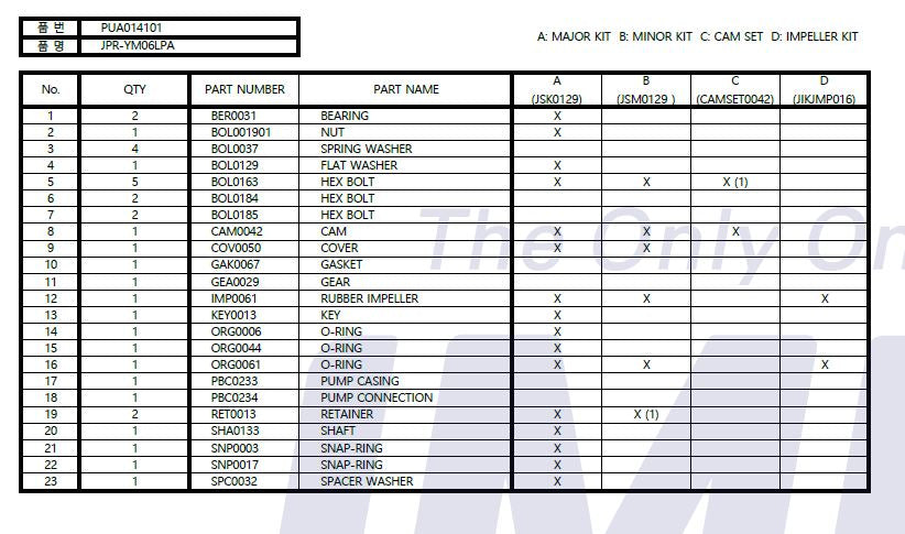| Pos | Description | Yanmar Number | Johnson Number | Included Minor Kit |